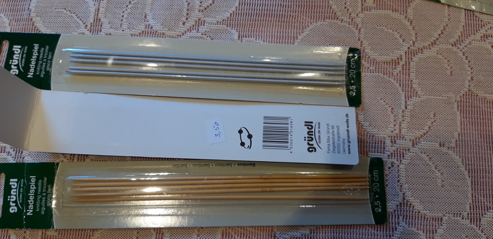 Natürlich haben wir zur Verarbeitung der Wolle auch Stricknadeln, Nadelspiele und Häkelnadeln in verschiedenen Größen.